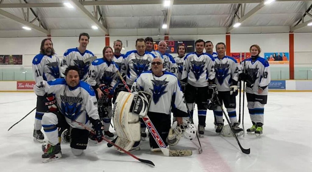 Rego plays blind ice hockey for the Edmonton “SeeHawks” and met another goaltender, John Hunter, inquiring online about gear modifications and a chest protector. Later Hunter got injured, and trying to help his team find a goalie for a league game, he reached out on the Edmonton Goalies Facebook page.