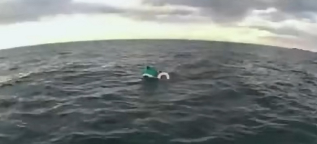 When they arrived on the scene, all that could be spotted bobbing about was a turquoise cooler, on which were dangling a pair of life-preservers.