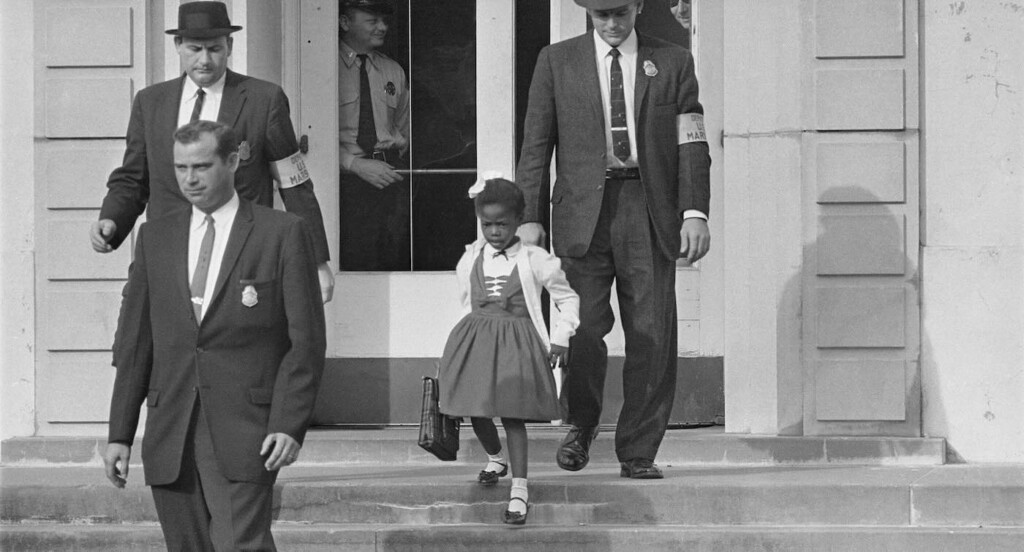 Screaming protestors surrounded the building as federal marshals escorted a brave six-year-old girl on her way to making history. In first grade.