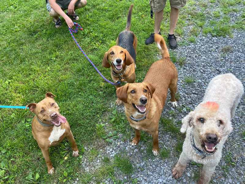 Since the incident, the four pooches have had playdate in the park, celebrating their new, and entirely accidental friendship.