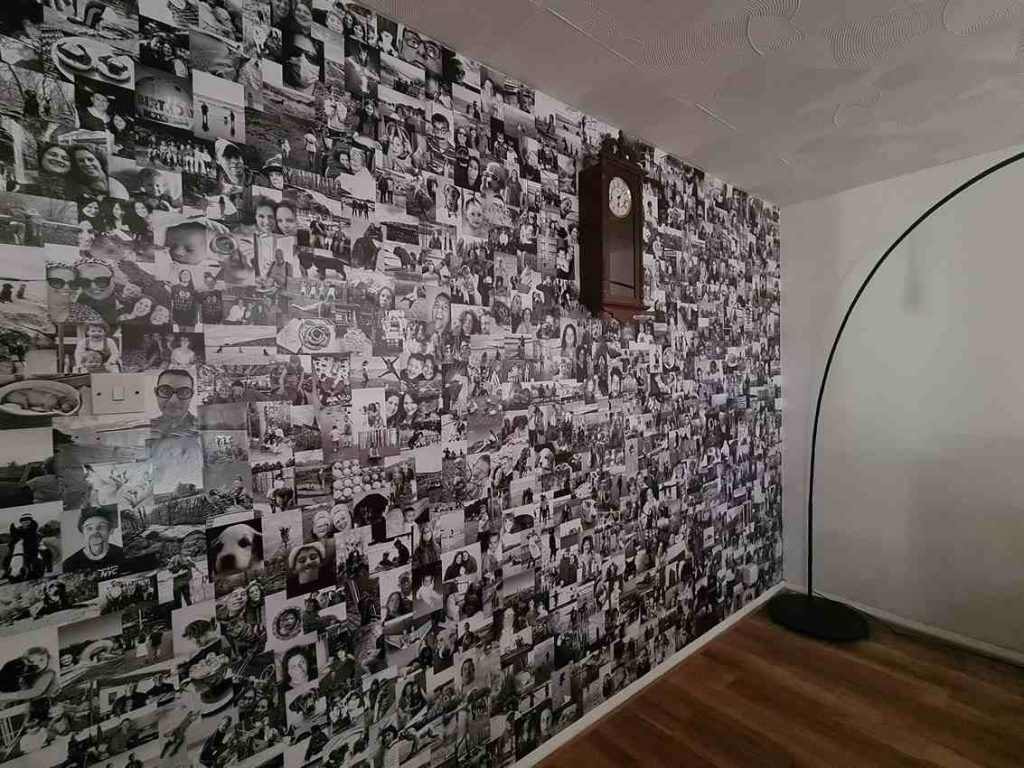 An English mom has turned her entire living room wall into a photo montage to remind her family of happier times in a bid to help them cope with COVID trauma.