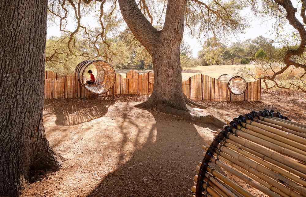 For the 2020 exhibition, Perkins & Will built a fort entirely of bamboo tubes, allowing kids’ tireless knees to crawl them about inside an enclosed yet natural space.