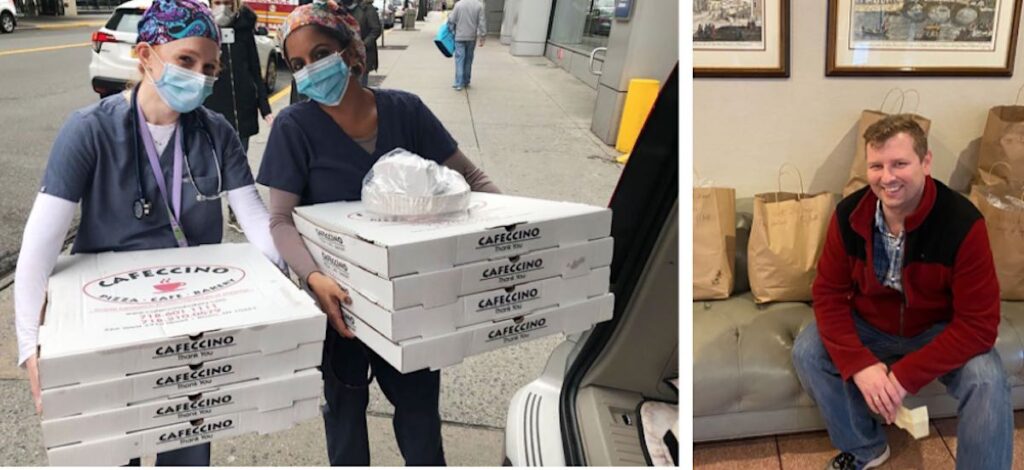 With the growing need, the Pizza Brigade expanded operations. One day, they delivered 20 pizzas to healthcare professionals battling COVID-19 in the emergency room at Montefiore Medical Center. Then 25 pizzas to Hatzalah, a local volunteer ambulance corps. The next day, ten pizzas to Weill Cornell Hospital. Every order that came in kept the restaurant in business and his staff employed.