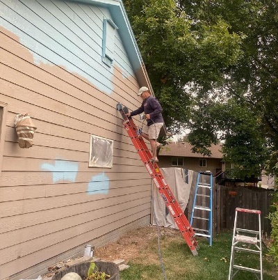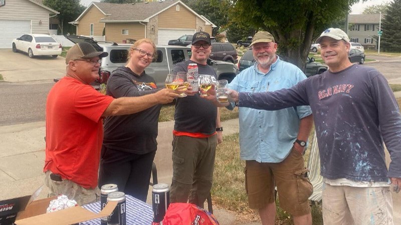 Five hours later, after the facade of the once brown house was light blue, everyone celebrated with an impromptu get-together in the family driveway.