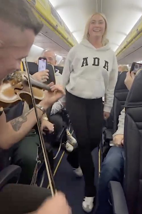 A flight from Belfast to Lanzarote had a spontaneous folk music performance after a passenger whipped out his fiddle and a stranger started doing a river dance in the Aisle.