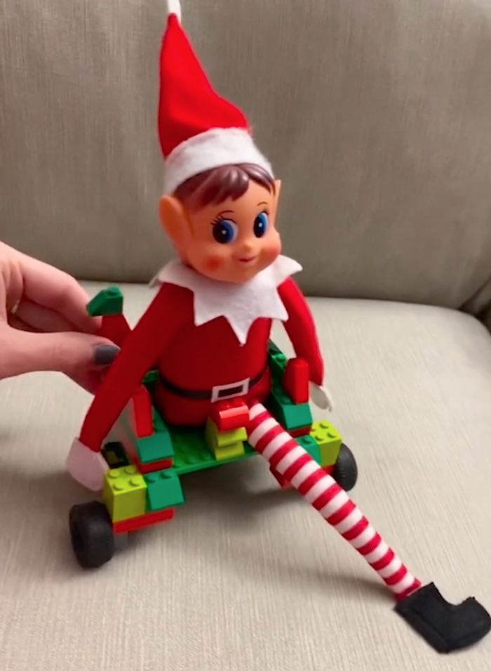Lauren posted a video about the toy’s ordeal online with the caption: “This elf is going to take over my life,” after spending hours stitching his leg and building a Lego wheelchair.