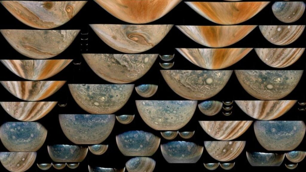 With its host of science instruments, the mission of the Juno spacecraft—launched in 2011—is to “investigate the existence of a solid planetary core, map Jupiter’s intense magnetic field, measure the amount of water and ammonia in the deep atmosphere, and observe the planet’s auroras,” says the U.S. space agency.