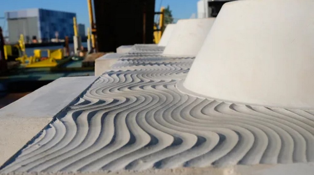 The outside of the low-carbon concrete is textured to encourage the growth of mussels and oysters, while a “Reefy Paint” of calcium carbonate is being developed as a kind of supplement for the bivalves.