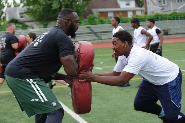 New York Jets defensive end Muhammad Wilkerson backed by fellow teammates and his foundation, T.E.A.M. 96, are always lending a hand to young, aspiring athletes, hungry families, and breast cancer survivors.