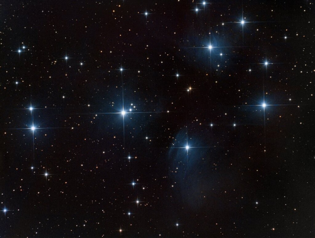 The Pleiades has many names: the Seven Sisters, Messier 45, or Mul Mul in ancient Mesopotamia, where it was found inlaid of gold on the Nebra Sun Disk from 1,600 BCE.