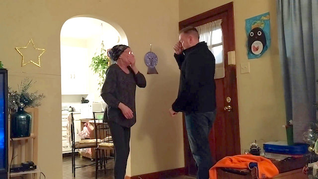 Jacob’s sister Becky filmed the special moment that Debora opened the door on December 24th and saw her son for the first time since her diagnosis.