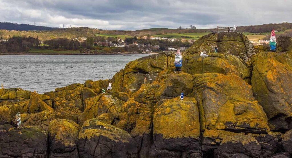 If you’re ever in this estuary north of Edinburgh, consider visiting the outcropping which seems to be gnome sweet gnome.