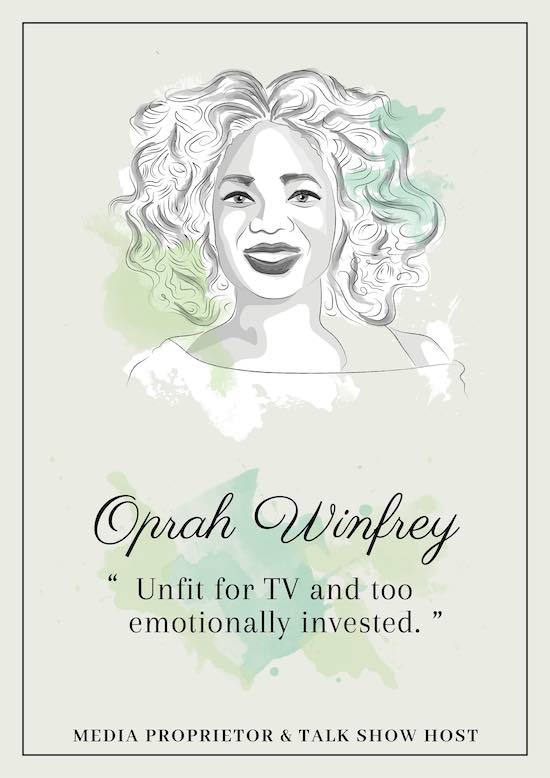 6) Oprah Winfrey – “Unfit for TV and too emotionally invested.”