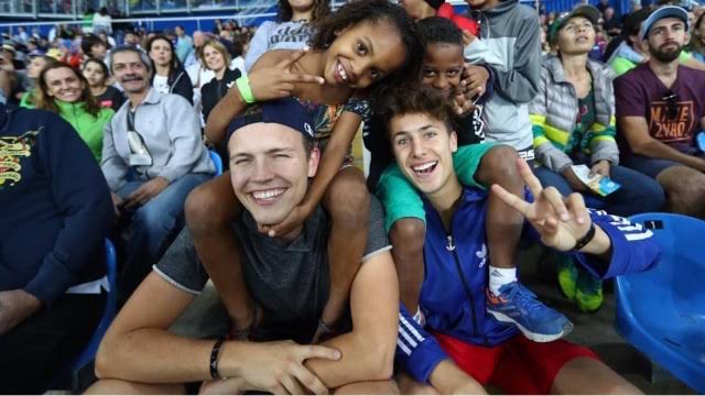 Juanpa posted a picture with a child in front of the Engenhao stadium saying “Taking this little one to the Olympics has amazing. This is my little brother for a night: his name is Carlos and this has been a great experience for both of us.”