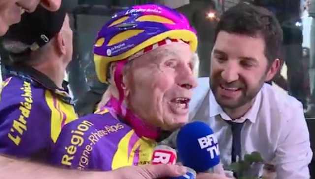 The event at the Saint-Quentin-en-Yvelines velodrome was reportedly filled with cheering fans of the centenarian’s inspiring career.