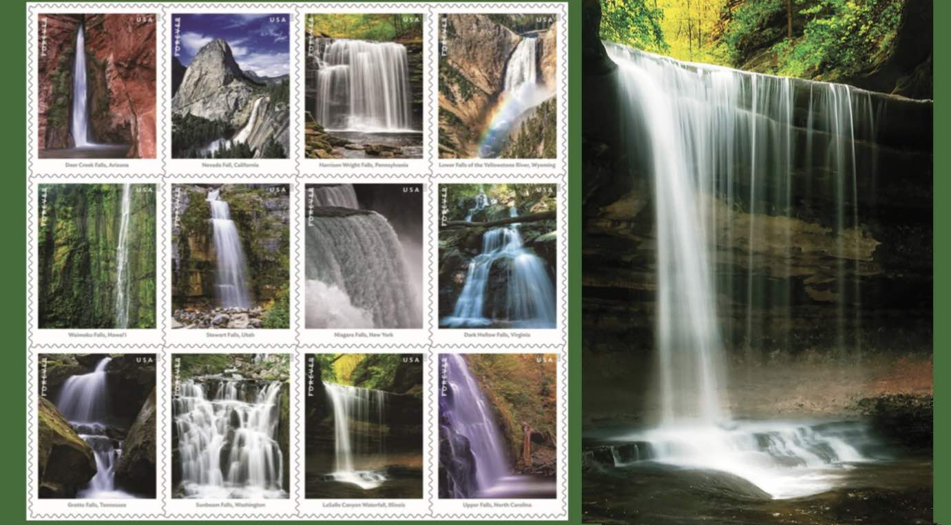 12 news stamps attempt to communicate the majesty of the nation’s most beautiful cascades, from Virginia to Washington State to Hawai’i.