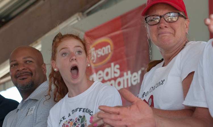 Tyson Foods heard about the girl’s good works and named her a winner of their Meals That Matter Hero award. Along with the honor, the company surprised her with a new commercial-sized freezer and a $20,000 donation to her food pantry.