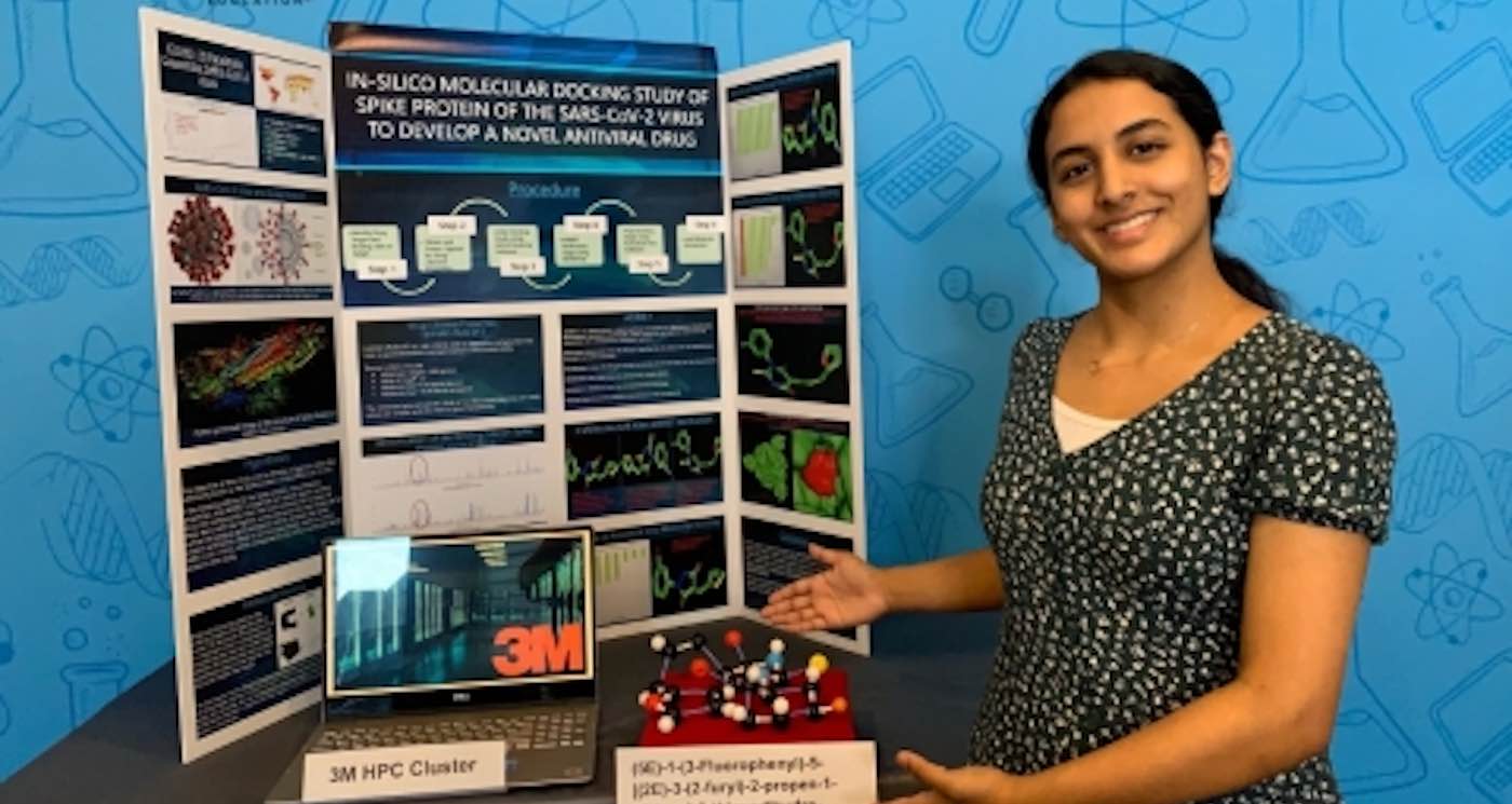 As part of her research, Frisco’s Anika screened millions of small molecules for drug-likeness properties, ADMET properties, and binding affinities against the spike protein using numerous software tools.
