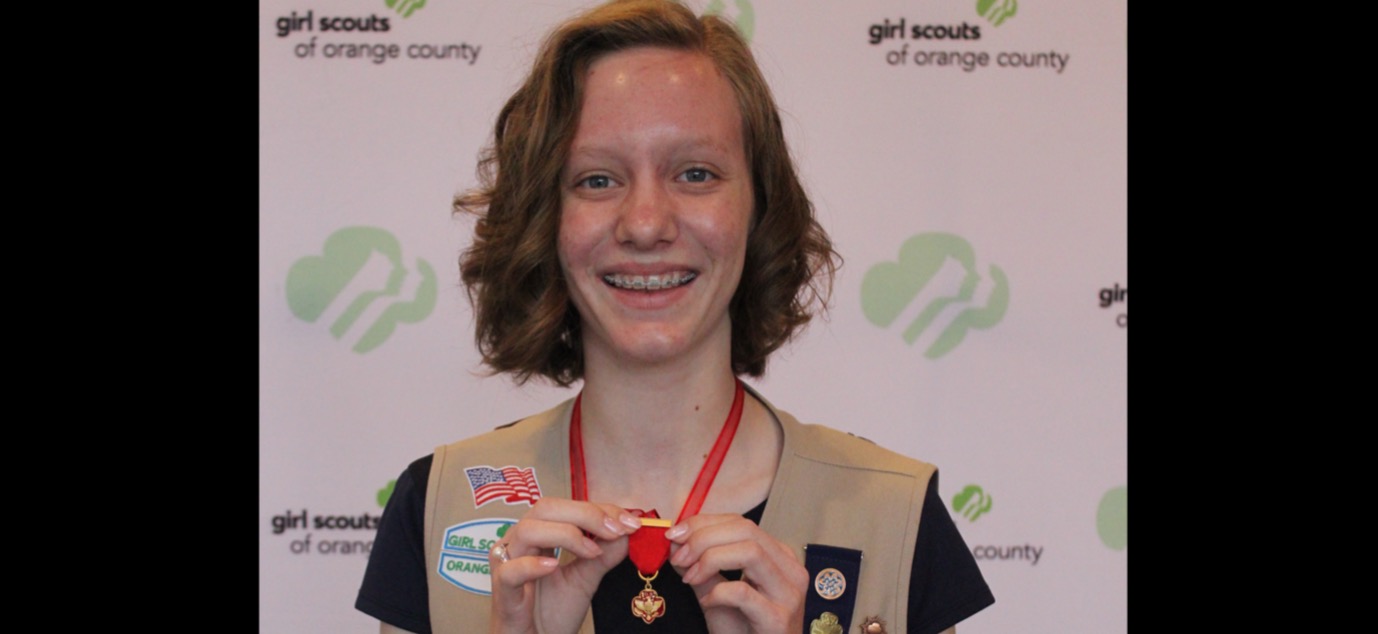 Vikki Shepp, the CEO of Girl Scouts of Orange County, presented the award to Ava, who is a Cadette from Troop 1967 in Irvine.