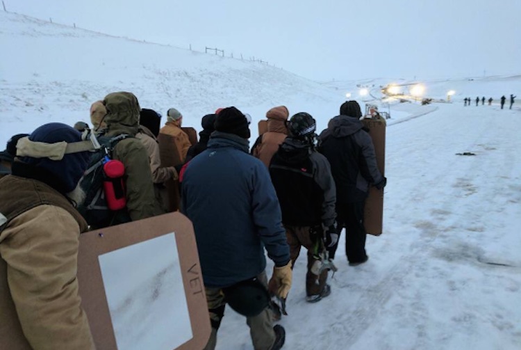 2,000 veterans with the Veterans Stand for Standing Rock organization have just arrived at the Standing Rock campsite to surround and protect the protestors.