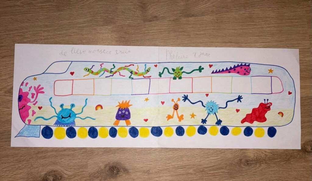 Phileine worked with a professional illustrator Jip Piet to cover the train cars in friendly monsters, deliberately designed to be impossible to scare anyone as they crawl and slither along the exterior.