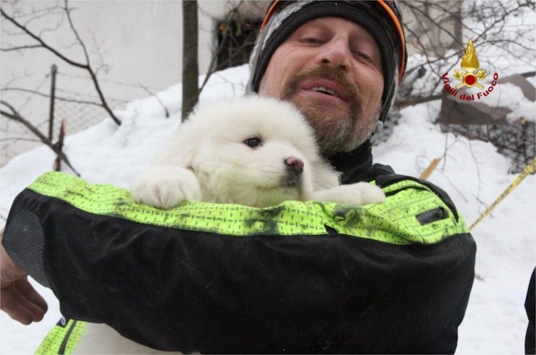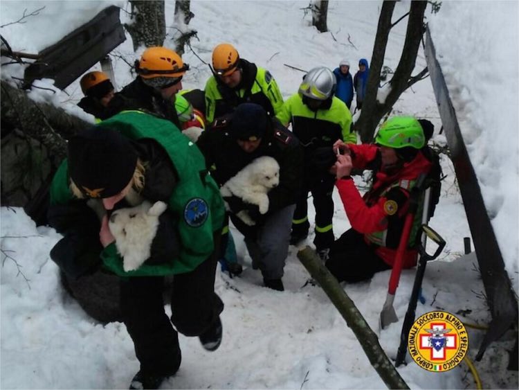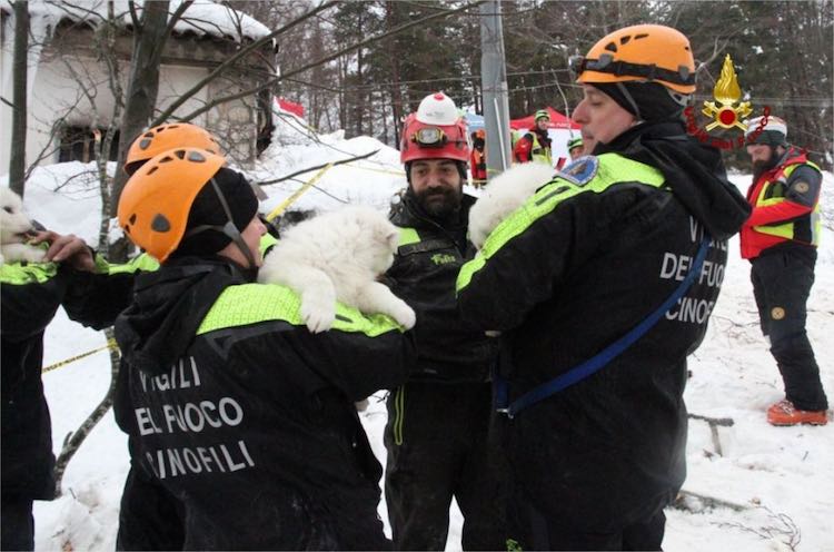 The pups have given hope to the fire department that there will be more air pockets protecting survivors within the rubble of Hotel Rigopiano.