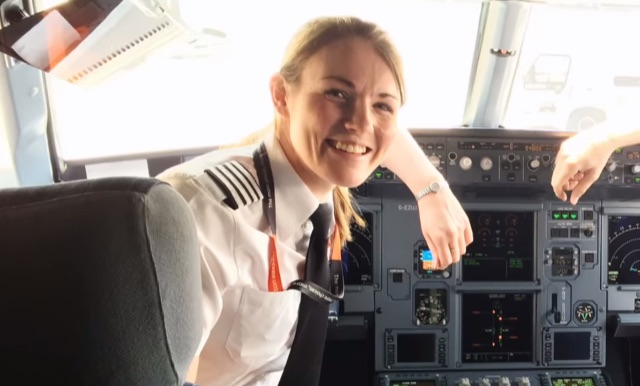 Kate’s job is to captain commercial airlines – but in getting herself where she is now, she has a new purpose; namely, to serve as one of the few role models for young aspiring female pilots.
