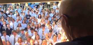 When this high school teacher stopped his chemotherapy sessions after a long battle with esophageal cancer, his students wanted to be there for him. That’s why 400 teens from Nashville’s Christ Presbyterian Academy gathered outside Ben Ellis’s window to sing for him. Ellis had continued teaching Latin and Bible study even though he was undergoing cancer treatments. When … Continue reading 400 Students Sing Breathtaking Tribute at Window of Teacher With Cancer (WATCH)