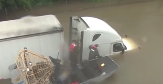 She then chased after the vehicle until she finally flagged it down and pointed out the stranded truck driver. The rescuers were able to float alongside the truck until they could pull the driver to safety.