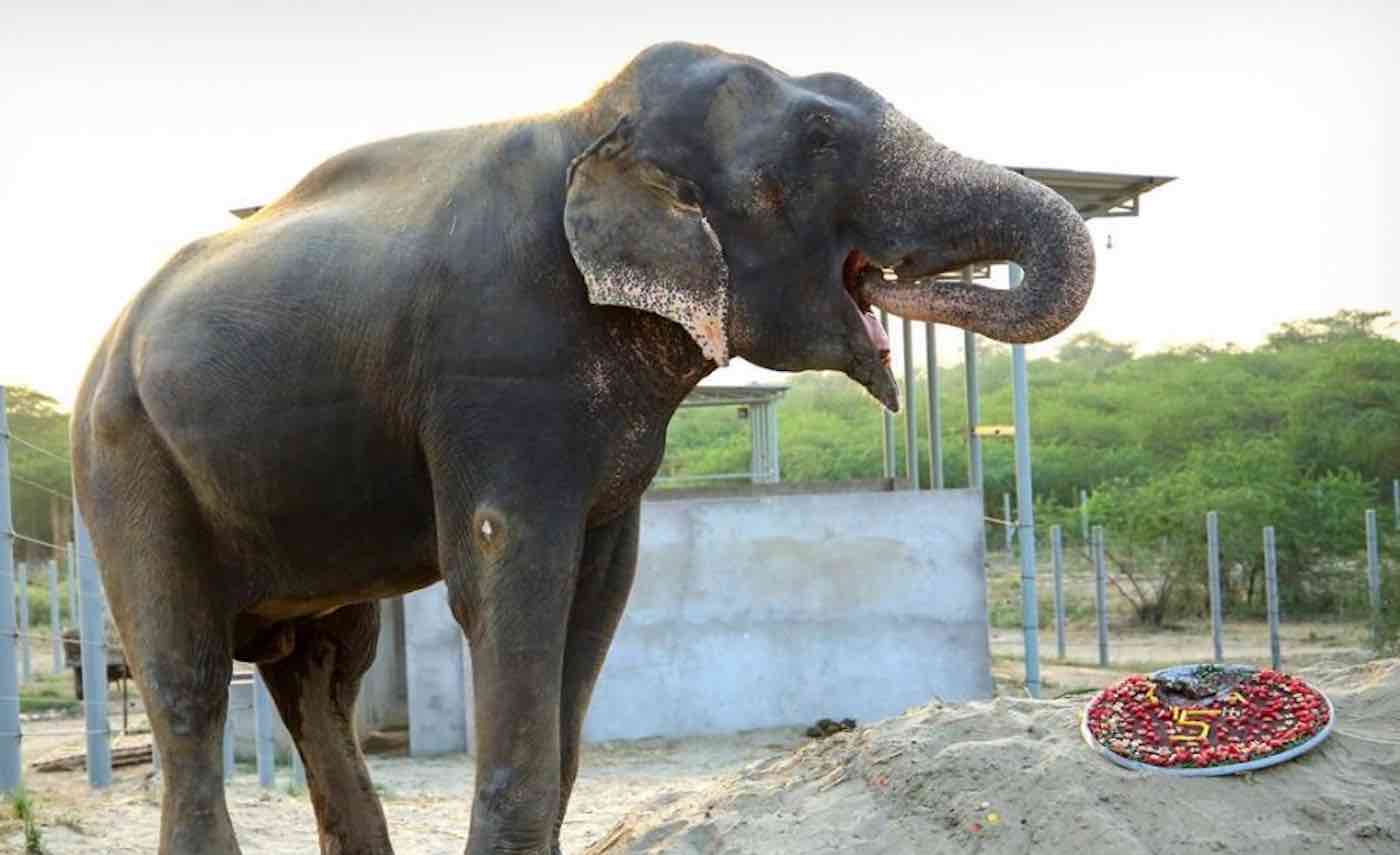To the rescue center’s delight, Raju was more than happy to accept their gifts—and showed off a big pachyderm smile as he scooped up the tasty bites of his special cake.