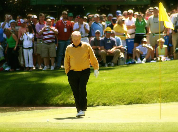 Teeing off at the 130-yard, fourth hole, Nicklaus drove the ball onto the green, past the flag. The ball took three bounces, then it’s spin carried it straight back into the hole. The crowd burst into applause and golfing greats Ben Crenshaw and Gary Player shared high-fives and fist-bumps with Nicklaus.