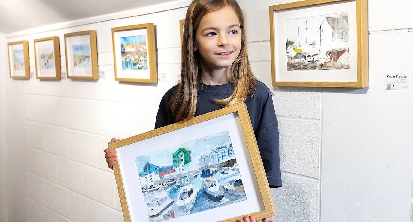 An eight-year-old artist was invited to present his watercolors in a local exhibition—where he has now sold his first paintings.