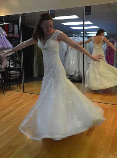 She also wanted to offer her dress as a loaner to the bride — and miraculously, it fit.