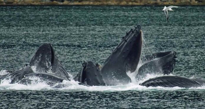 humpback whales bubble net fishing in Alaska, 2007 – credit, NOAA
