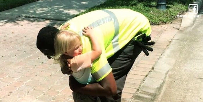 During pickup, the men stop what they’re doing to say hi, give a hug and to chat with these cuties. The kids even prepare snacks and cold Gatorade the garbage men.