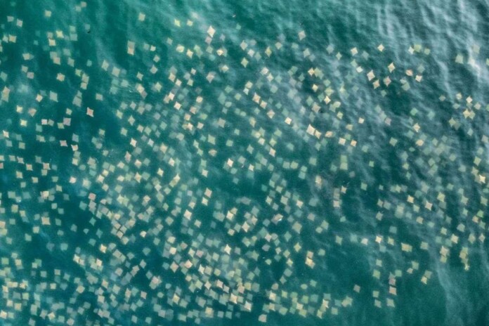 Numbering in the hundreds, Lukic’s video taken from above makes it appear like someone threw confetti in the water.
