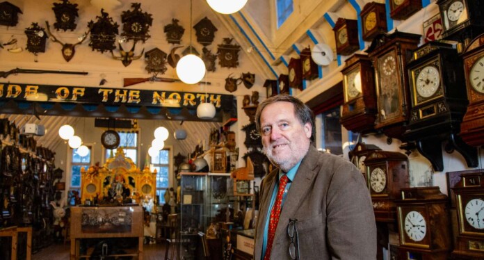 Cuckooland’s Roman Piekarski with the world’s largest collection of cuckoo clocks in Cheshire, England – SWNS
