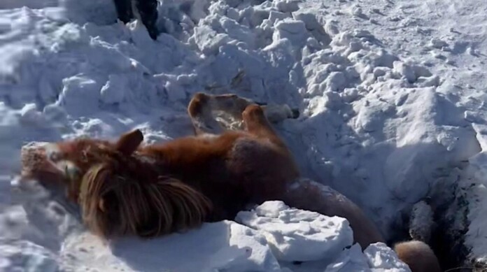 A man in Inner Mongolia, China, went above and beyond to rescue a pregnant horse that was trapped in a deep hole in the snow.