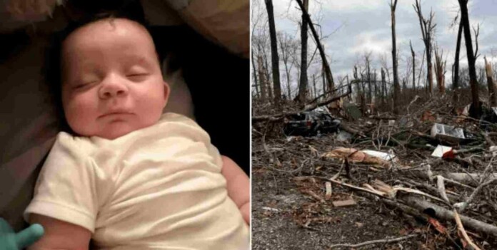 Surviving the collapse of the home, she searched desperately for the 4-month-old with her boyfriend, who had been thrown by the force of the funnel which broke his arm and shoulder