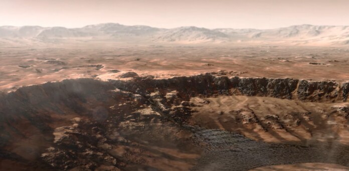 An animated impression of Jezero Crater filling with water over the years – credit NASA-JPL