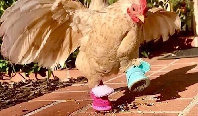 A California dog walker had the opportunity to adopt a disabled chicken, and social media loved him so much they’ve sent over 60 pairs of tiny shoes and boots.