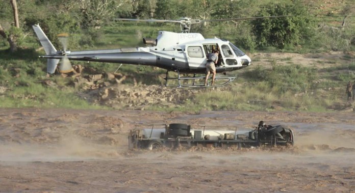 A tanker truck was crossing the Galana-Kulalu causeway, when the waters rose around the vehicle so fast as to strand him. Sheldrick Wildlife Trust’s operations manager for their ranch in the area called the helicopter, piloted by fixed-wing aircraft pilot, Taru Carr-Hartley, to the scene.