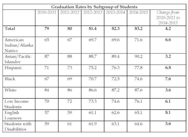 Black, Hispanic, Asian, Native American, low-income, disabled, and English-learning students have all showed promising gain, creating a whopping 83.2% graduation rate for the whole nation.