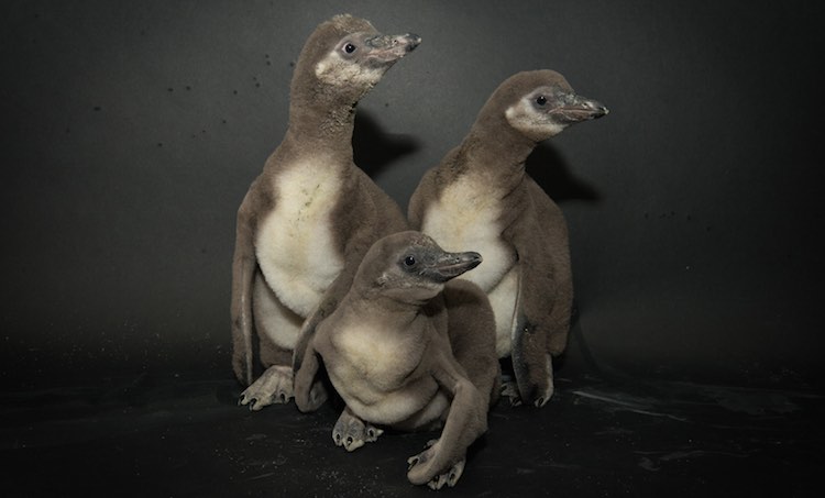 The male and female penguin take turns incubating the eggs for 39 days and then work together to provide food for the chicks. In the wild, the adult penguins work in shifts that can last days and even weeks as one member of the pair feeds at sea.