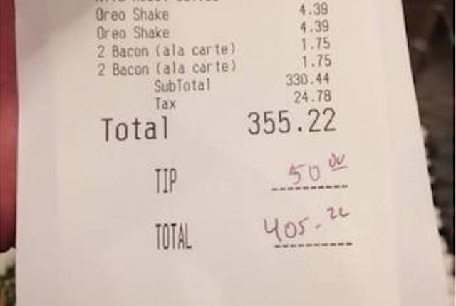 She also reportedly threw in $100 for dessert.