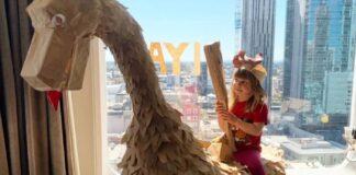 Family Builds Giant Dinosaur From Take-Out Containers During Hotel Quarantine: Naming It ‘Bagasaurus’