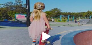 Phenomenal 6-yo Skateboarder Performs in Pink Party Dress and Leopard Print Helmet