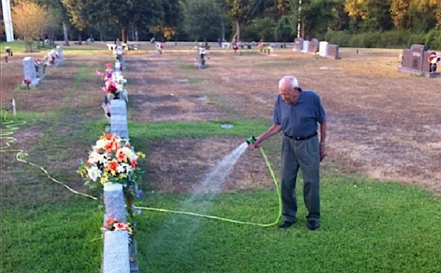 Man Sprinkles Compassion on Fallen Soldier’s Grave During Drought