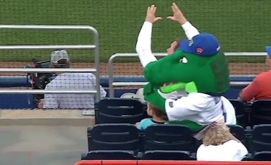 Alligators might seem menacing in the wild, but this green guy was spotted protecting a child from a rogue fly ball earlier this week.