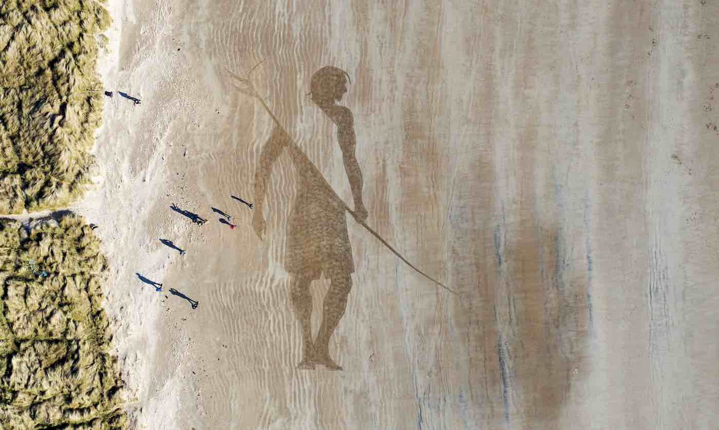 Claire Eason’s huge sand sketch of a sea-lover was only visible for a few hours before being washed away on the tide.